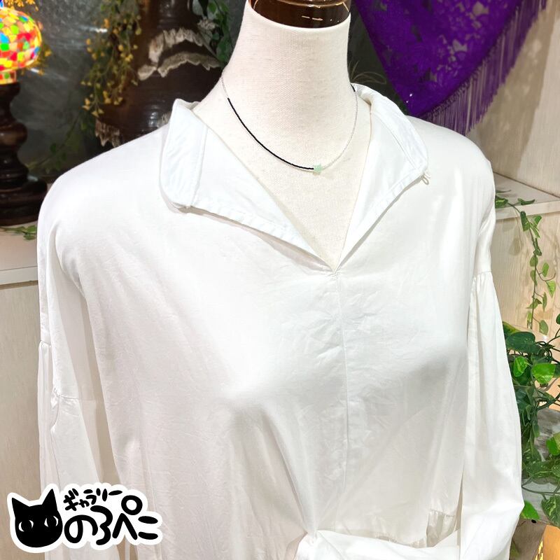 ネックレス部の太さは約1mmほど。テグスを通し、きちっと丁寧に繋がれた繊細なラインは、首もとにしなやかに沿いながらエレガントな曲線を描きます。