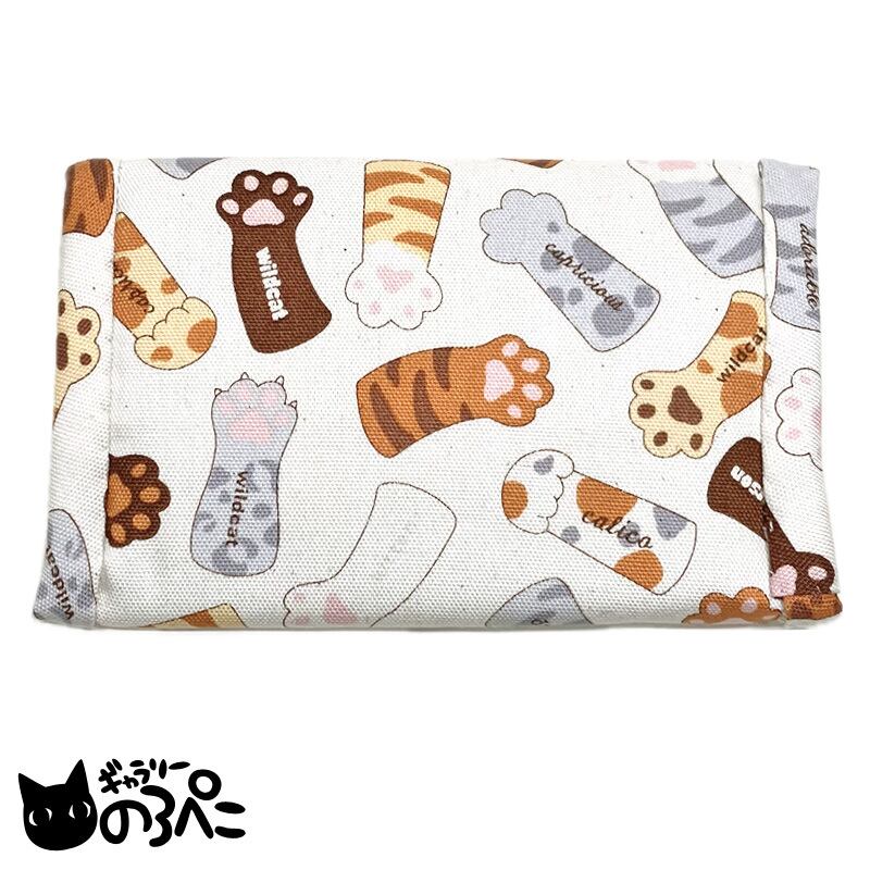 外側は猫ちゃんの手がいっぱいの生成りコットン生地。