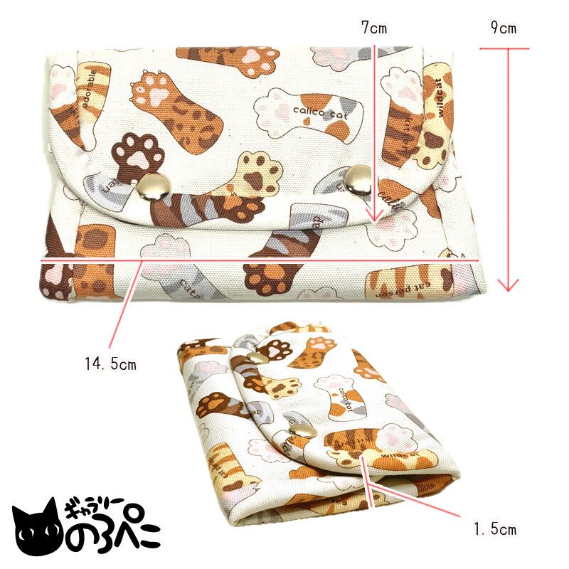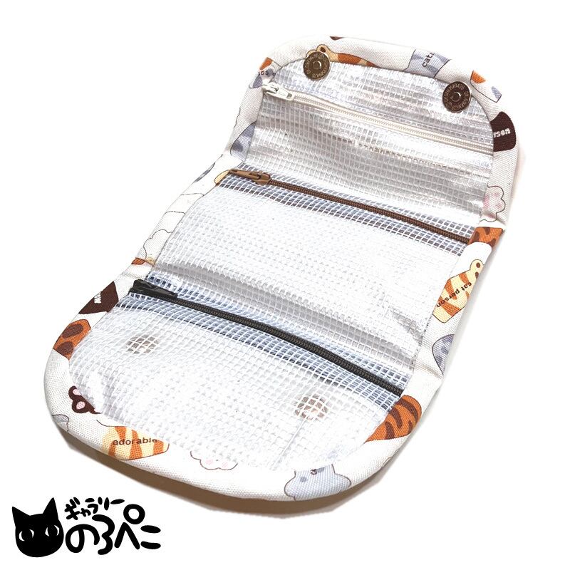猫の手も借りたい三つ折りポーチ(ビニールメッシュ素材のファスナーポケット3口タイプ・生成り) bc816-1011