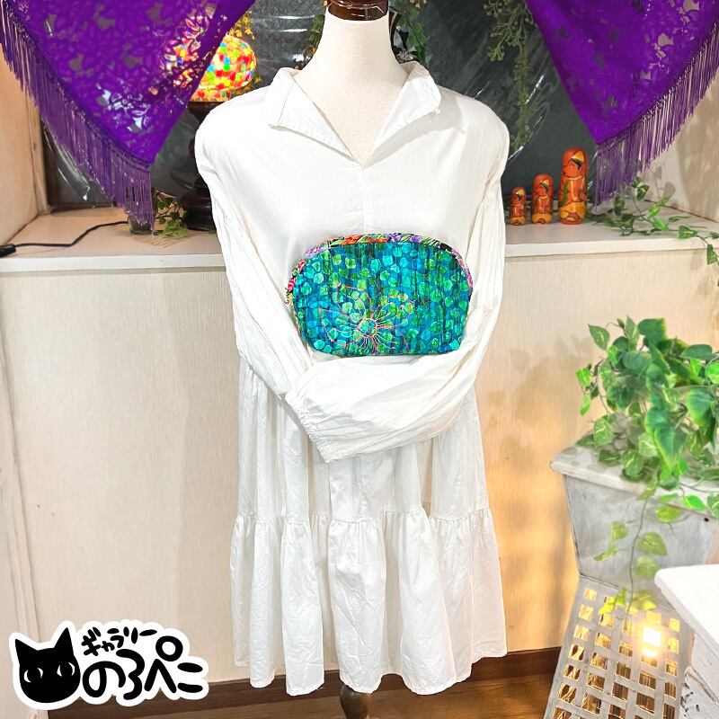 内側はスイーツ柄のUSAコットン。口幅約11.5cmの内ポケットがひとつ付けてあります。