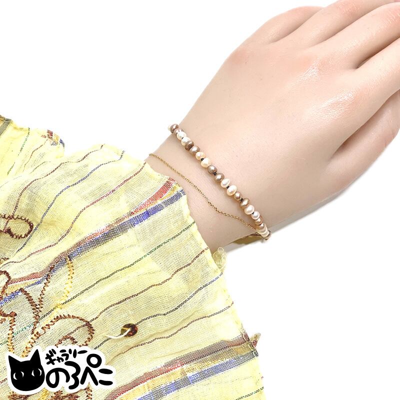 淡水パールのスリムなブレスレット(ニュアンスカラーがかわいい淡水パール&極小チェコビーズ・ベージュ) bc881-30