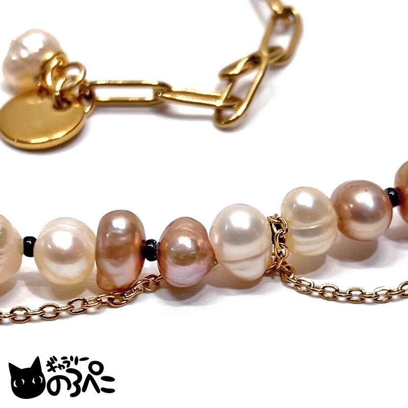 淡水パールの幅約0.3~0.4cm(3~4mm)程度 / ブレスレットの長さ約21cm(うちアジャスター約5cm) / 金具はゴールドカラーです