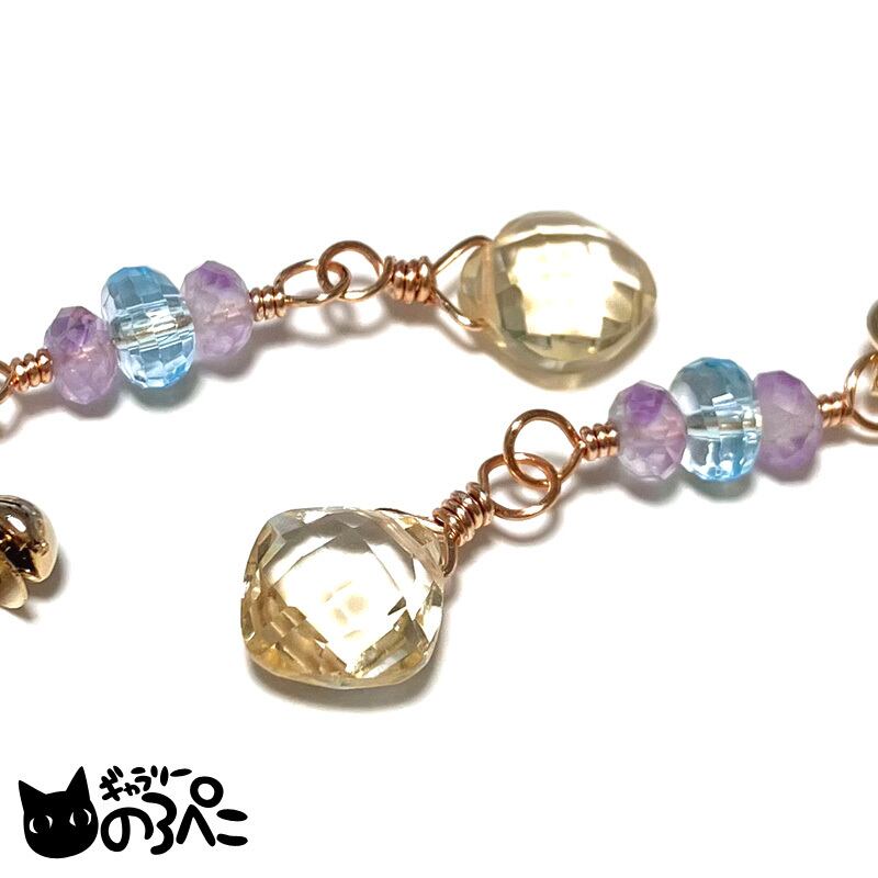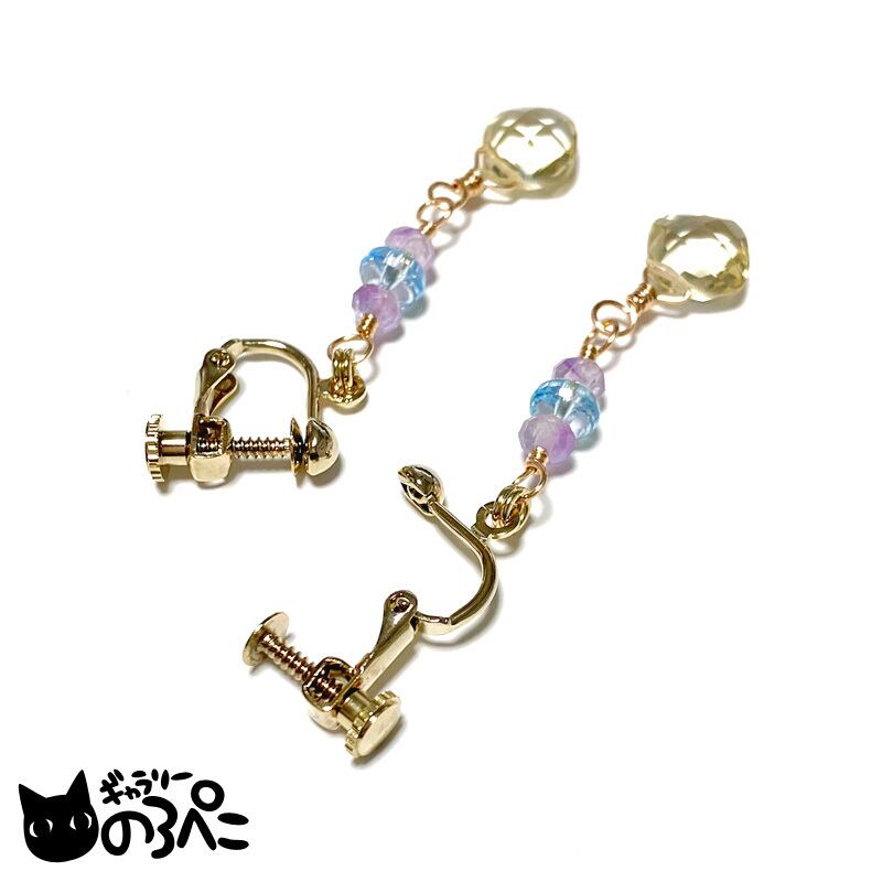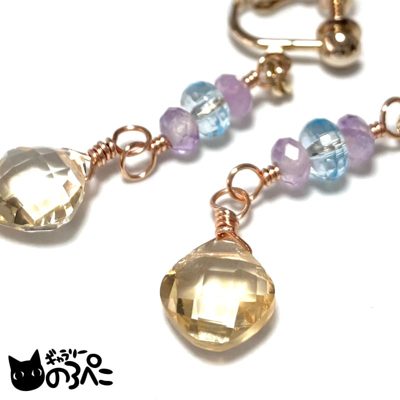 天然石(シトリン・ブルートパーズ・ラベンダーアメジスト)、ワイヤー、ネジバネ式イヤリング金具