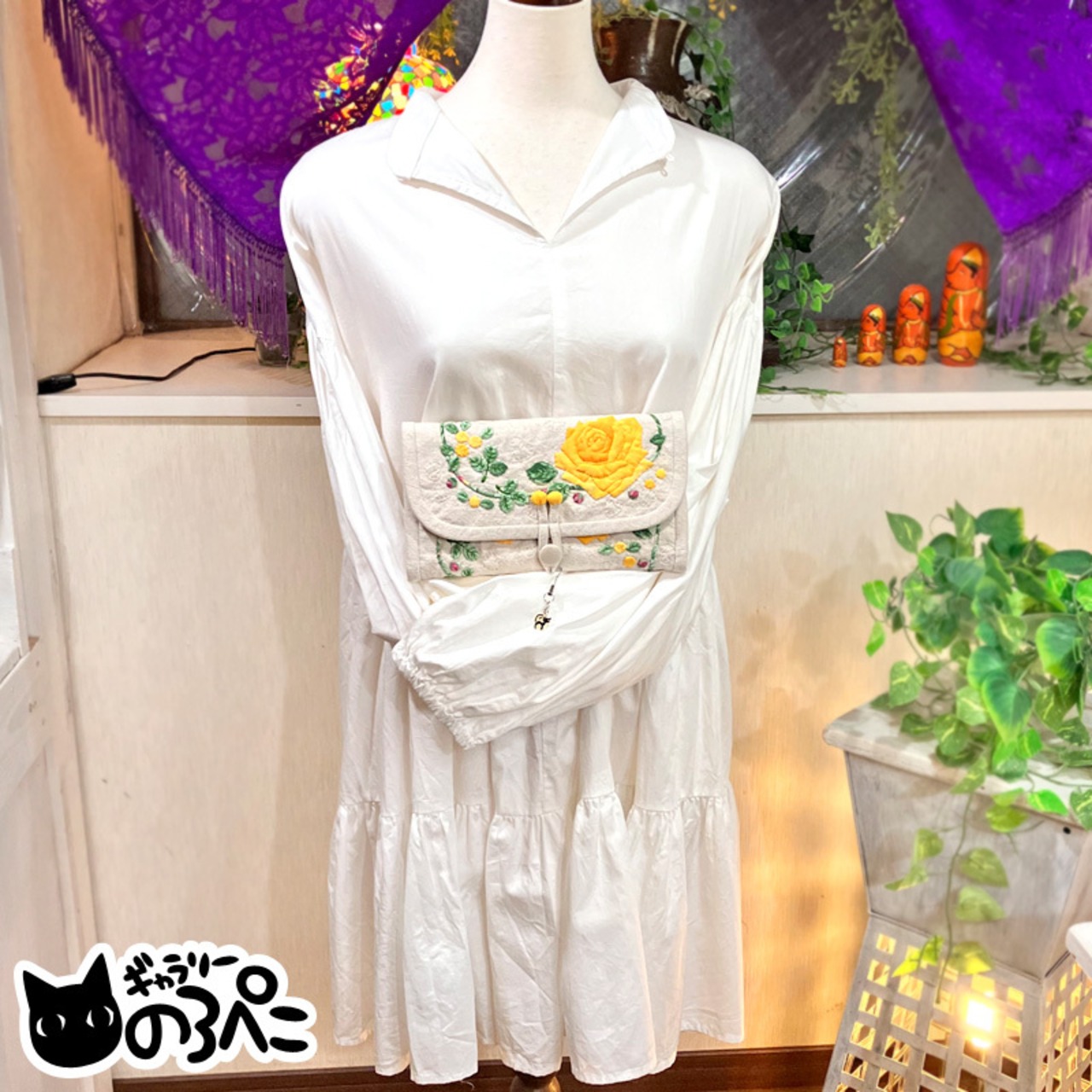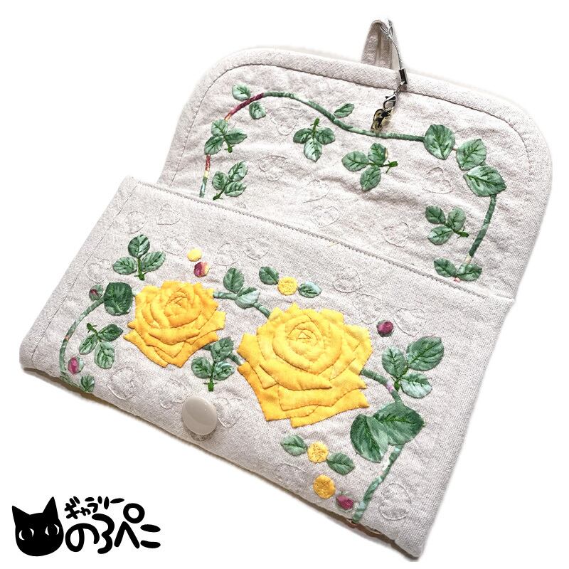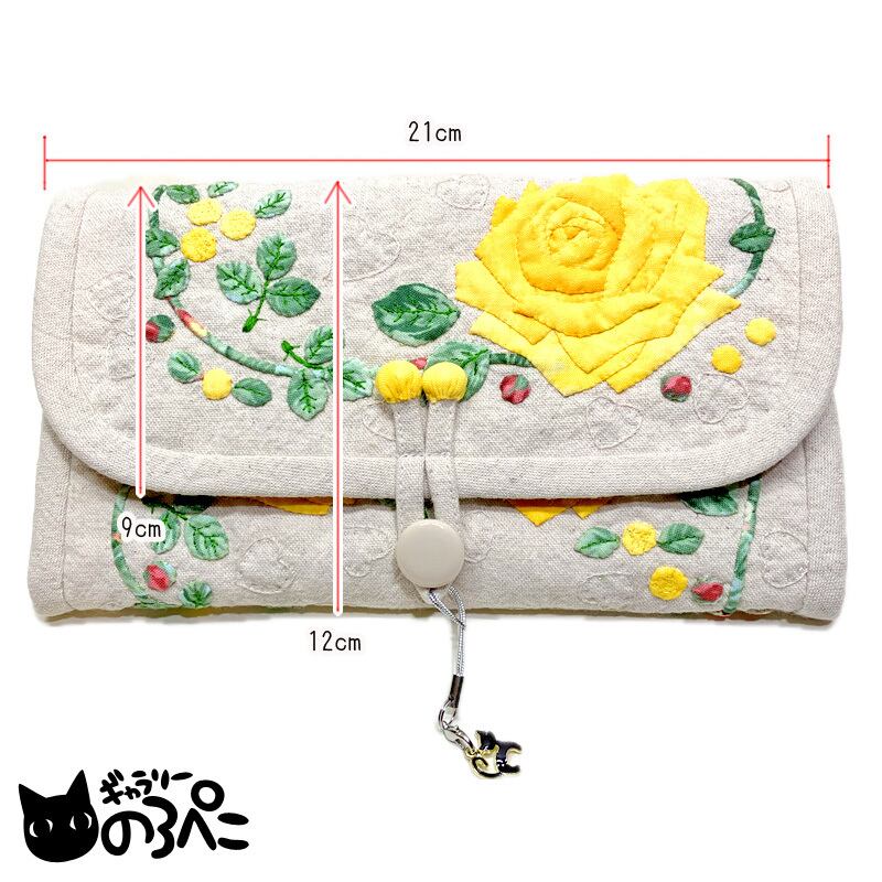 黄色い薔薇の長財布(薔薇の花のアップリケとハートキルティングの長財布・生成り) bc855-251