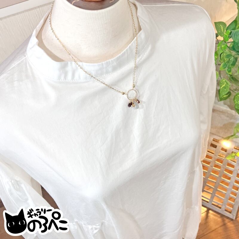 フローライトのしずくのリングフリンジネックレス(フローライト&ガーネット&シトリンの天然石ネックレス) bc798-112