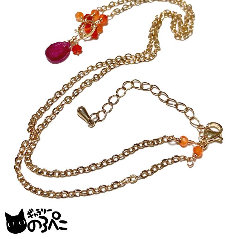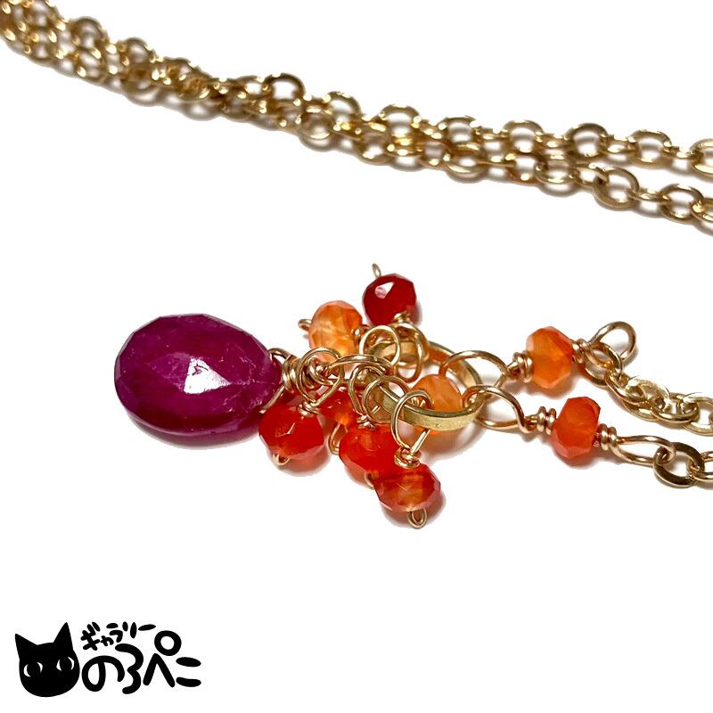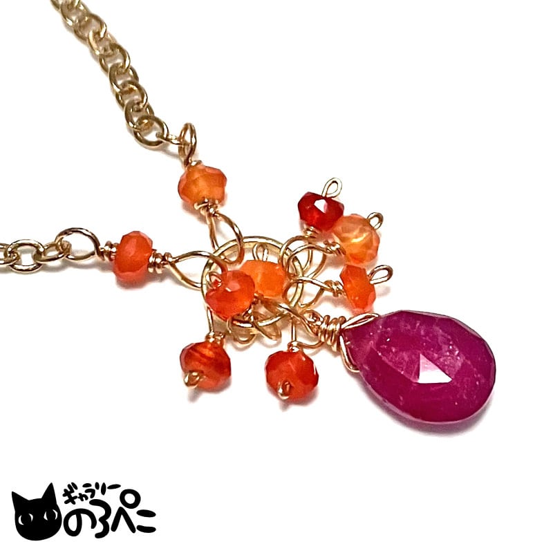 ルビーとカーネリアンのネックレス(濃いルビーレッドが美しいルビーのしずくとカーネリアンの天然石ネックレス) bc798-97