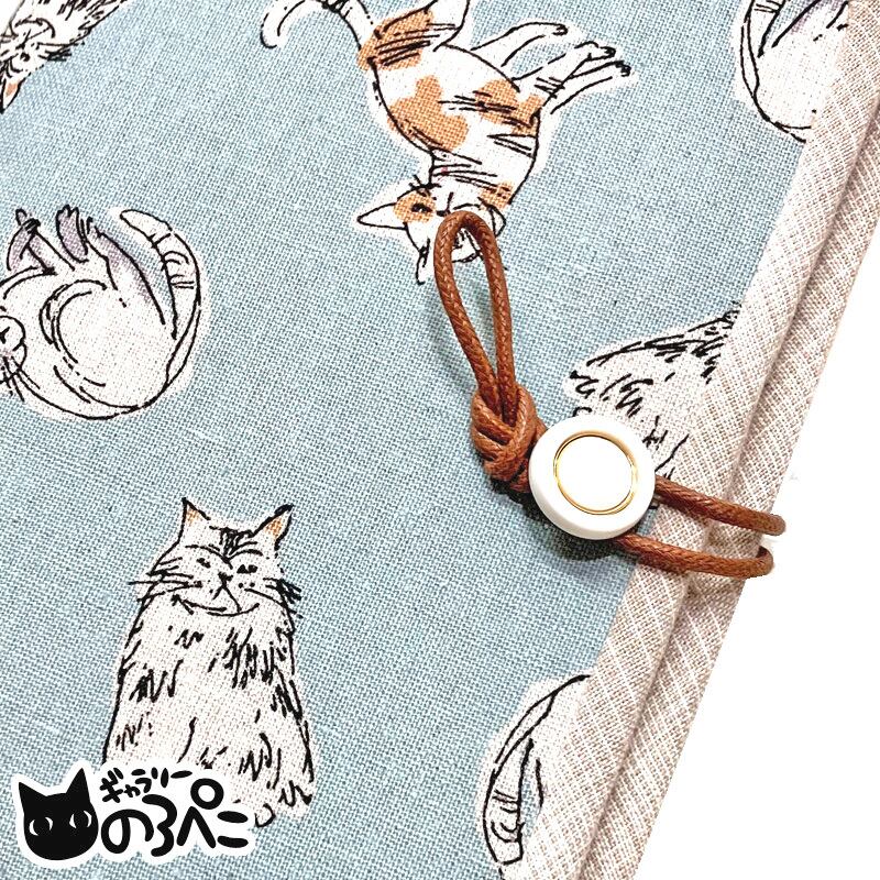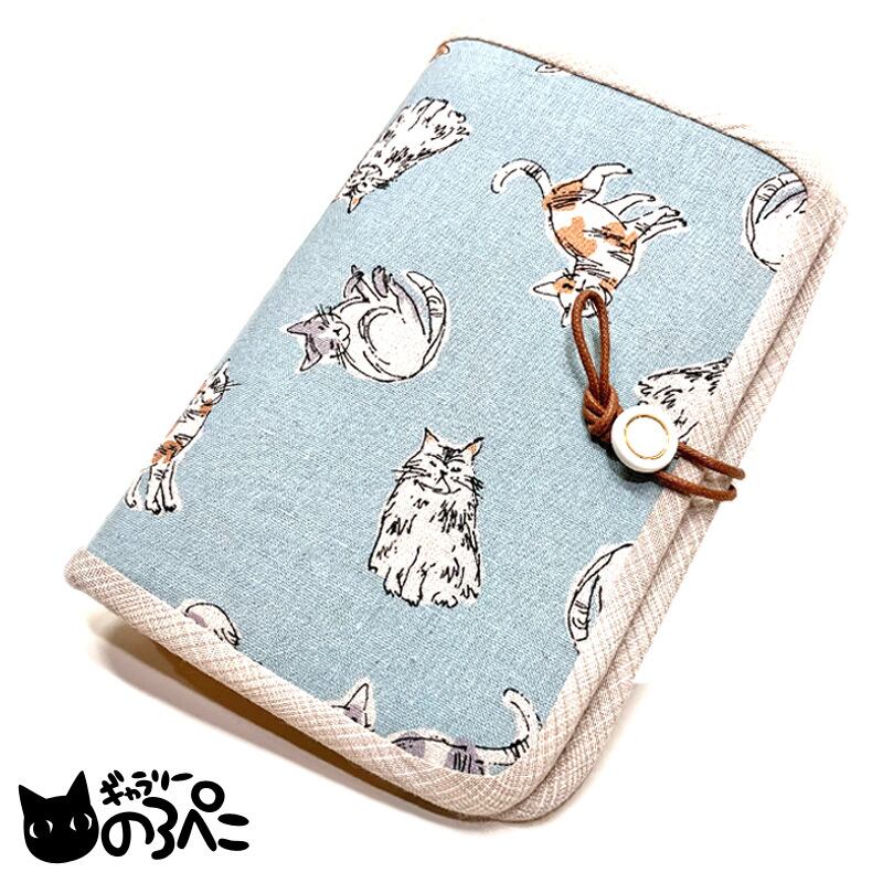和み猫ちゃんのお薬手帳ケース(自然な猫ちゃん柄の薄水色コットンリネンのお薬手帳ケース) aa362-a461