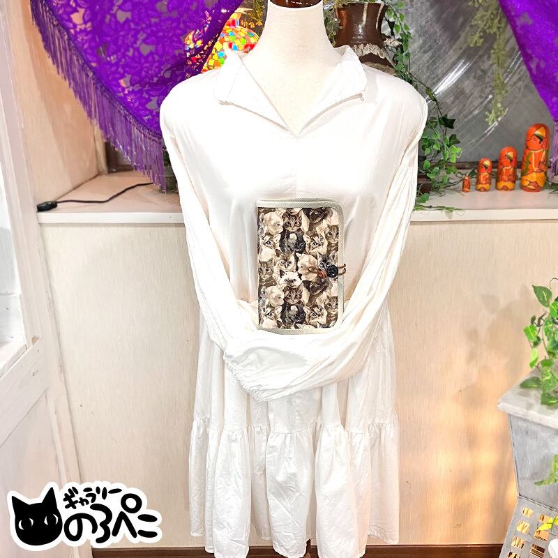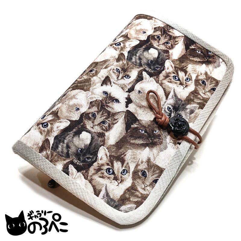猫ちゃんいっぱいのお薬手帳ケース(リアルな猫ちゃん柄コットンのお薬手帳ケース) aa362-485