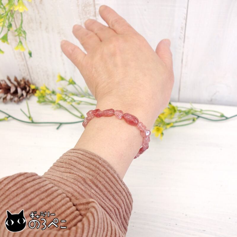 不揃いな石の形やピンクの濃淡が魅力的なブレスレットです。