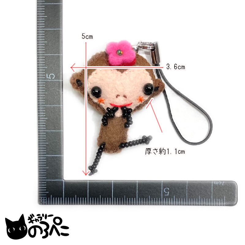 花飾りおさるのストラップ(頭に花を飾ったおさるのフェルトマスコットストラップ) D4029-709