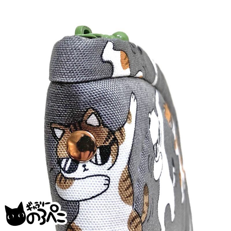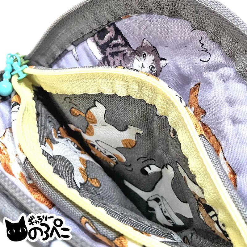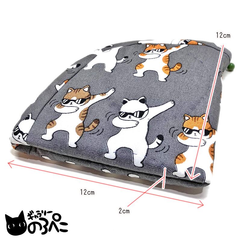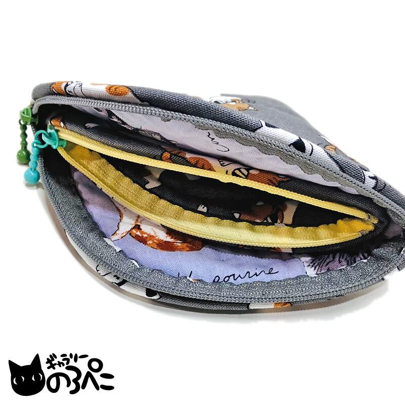 サングラス猫のL字ポーチ(内側にもファスナーポケットがある猫柄コットンのL字型ファスナーポーチ・グレー) bc816-1084