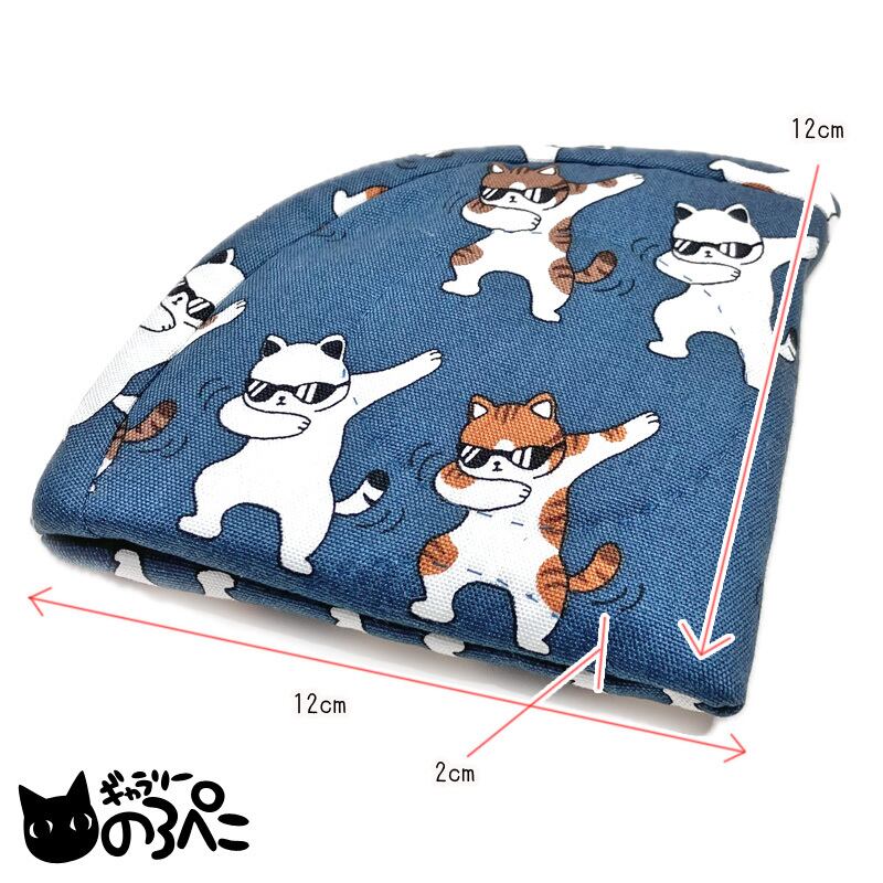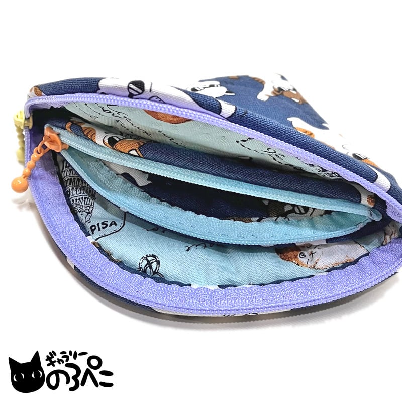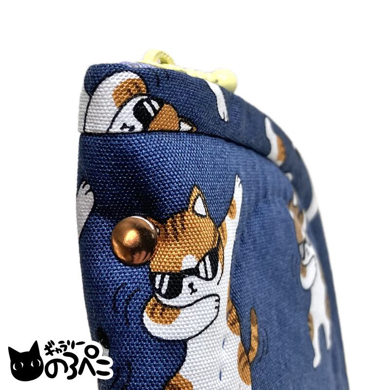 サングラス猫のL字ポーチ(内側にもファスナーポケットがある猫柄コットンのL字型ファスナーポーチ・ネイビー) bc816-1083