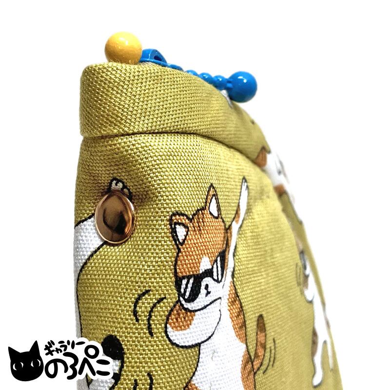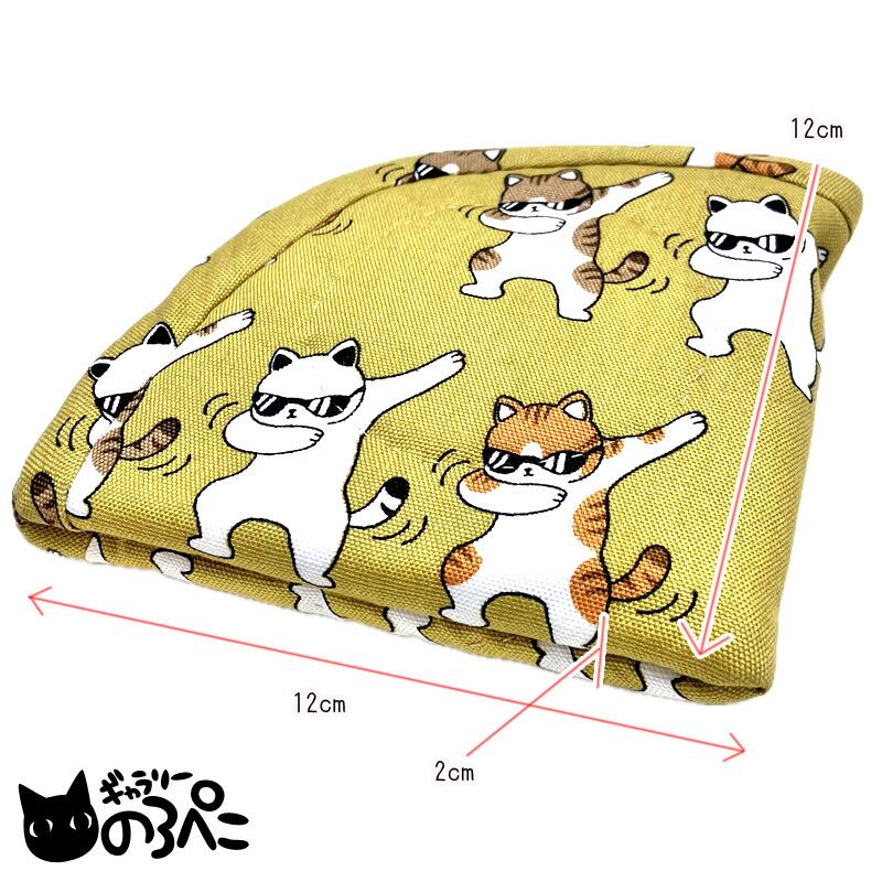 サングラス猫のL字ポーチ(内側にもファスナーポケットがある猫柄コットンのL字型ファスナーポーチ・マスタード) bc816-1082