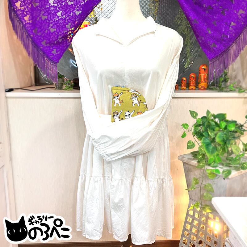外側はサングラスをした猫ちゃん柄のマスタード色コットン生地。丈夫な生地に接着キルト芯も使ってつくられているので、張りと厚みがあってしっかりしたポーチに仕上がっています。